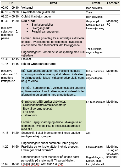 Program for arbejdsdag kl. 9-15 på Københavns Professionshøjskole, Tagensvej 18, lokale C130. HUSK at medbrínge din PC, for vi skal trække i arbejdstøjet:).