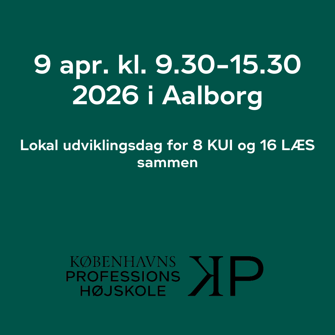 9. apr. kl. 9.30-15.30 2026 i Aalborg. Lokal udviklingsdag for 8 KUI og 16 LÆS sammen Laurits Jakobsen on January 3, 2025 2 KP-fagpersoner varetager dagen. Category: Uncategorized Post navigation Previous: Previous post: 4. marts kl. 9-15 2026. KUI Kompetenceudvikling for 16 KUI Next: Next post: 13. apr. kl. 9-15 på Frederiksberg. Lokal udviklingsdag for 8 KUI og 16 LÆS sammen Leave a Reply Cancel replyYour email address will not be published. Required fields are marked *Comment * Name * Email * Website Save my name, email, and website in this browser for the next time I comment.